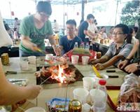 农庄内还有趣味野炊及自制烧烤、农家餐三类。趣味野炊:十个人为一组为一桌,每组会领到食材牌去领取食材,包括抓鸡、捞鱼、摘菜、拾取柴火、野炊工具及其他食材的领取。然后就是各组的自由发挥啦,看看那组的小伙伴..